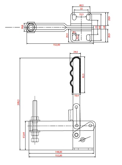 Bloccaggio Verticale - base piatta - braccio fisso - portata 350 Kg. - Articolo Clamptek CH-U13. Sfruttando le caratteristiche geometriche e i vantaggi meccanici, Il meccanismo a leva, amplifica la bassa forza imputata dall’operatore in un’elevata capacità di serraggio.Per realizzare questo, è necessario posizionare il bloccaggio al di sopra del proprio asse principale. Viene così garantita un’ottima tenuta e impedita l’apertura durante il lavoro.Queste caratteristiche rendono i bloccaggi a leva adatti a numerose applicazioni specialmente in operazioni ripetitive.L'intera gamma presenta un design della struttura e un'impugnatura ergonomica, che permettono un'elevata funzionalità.