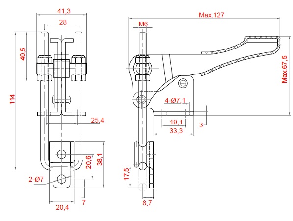 Bloccaggio a tirante - base piatta - versione verticale - portata 460 Kg. - Articolo Clamptek CH-40334-SS - VERSIONE INOX.