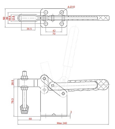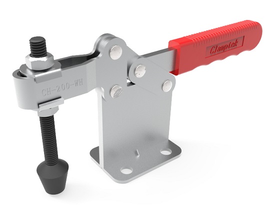 Bloccaggio orizzontale - base piatta alta - braccio regolabile - portata 410 Kg. - Articolo Clamptek CH-200-WH. Sfruttando le caratteristiche geometriche e i vantaggi meccanici, Il meccanismo a leva, amplifica la bassa forza imputata dall’operatore in un’elevata capacità di serraggio.Per realizzare questo, è necessario posizionare il bloccaggio al di sopra del proprio asse principale. Viene così garantita un’ottima tenuta e impedita l’apertura durante il lavoro.Queste caratteristiche rendono i bloccaggi a leva adatti a numerose applicazioni specialmente in operazioni ripetitive.L'intera gamma presenta un design della struttura e un'impugnatura ergonomica, che permettono un'elevata funzionalità.