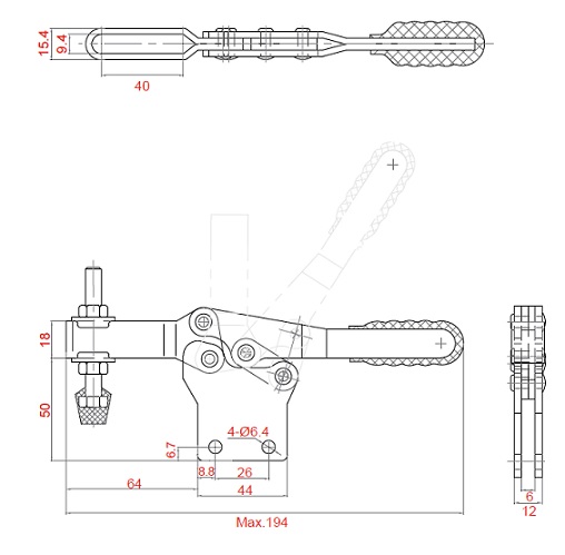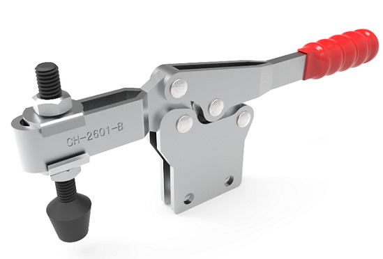 Bloccaggio orizzontale - base dritta - braccio regolabile - portata 350 Kg. - Articolo Clamptek CH-2601-B. Sfruttando le caratteristiche geometriche e i vantaggi meccanici, Il meccanismo a leva, amplifica la bassa forza imputata dall’operatore in un’elevata capacità di serraggio.Per realizzare questo, è necessario posizionare il bloccaggio al di sopra del proprio asse principale. Viene così garantita un’ottima tenuta e impedita l’apertura durante il lavoro.Queste caratteristiche rendono i bloccaggi a leva adatti a numerose applicazioni specialmente in operazioni ripetitive.L'intera gamma presenta un design della struttura e un'impugnatura ergonomica, che permettono un'elevata funzionalità.