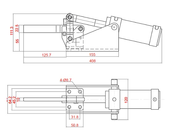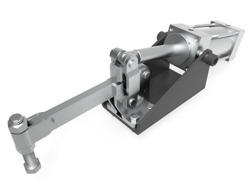 Bloccaggio pneumatico verticale - base piatta - braccio regolabile. - portata 460 Kg. - Articolo Clamptek CH-10249-A.