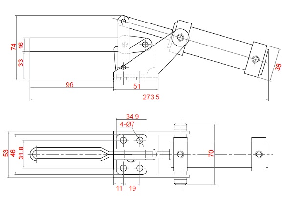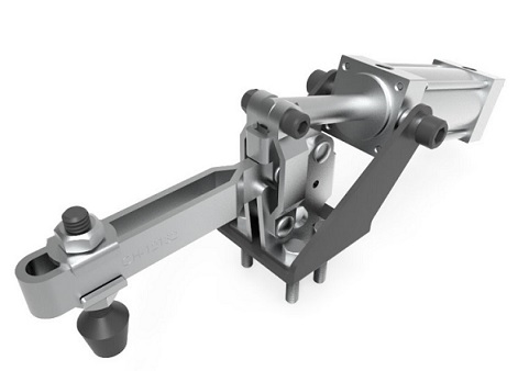 Bloccaggio pneumatico verticale - base piatta - braccio regolabile - portata 230 Kg. - Articolo Clamptek CH-12132-A.