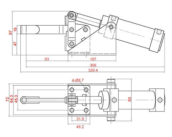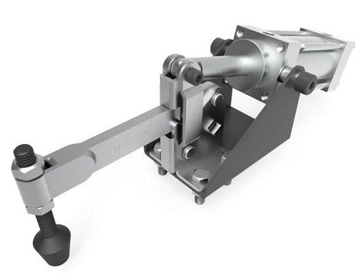 Bloccaggio pneumatico verticale - base piatta - braccio regolabile - portata 350 Kg. - Articolo Clamptek CH-12275-A.