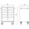 Rif. Beta BT024003077Articolo Beta C04TSS-7Cassettiera mobile con sette cassetti in acciaio inossidabile con ruote antitraccia.Caratteristiche 7 cassetti da 570 x 410 mm montati su guide telescopiche a sfera, di cui:-n. 6 cassetti altezza 83 mm, portata max 25 kg,-n. 1 cassetto altezza 170 mm, portata max 30 kgn.4 ruote antitraccia con nucleo in acciaio inossidabile Ø 125mm, 2 fisse e 2 girevoli (due con freno)Struttura interamente in acciaio inossidabile AISI 304.Ruote, supporti, sfere, interno dei cassetti e relative guide in acciaio inossidabile.Maniglia cassetti in alluminio.