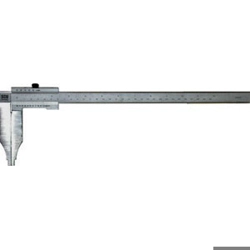 Tipo professionale a becchi lunghi. Precisione DIN 862. In acciaio inossidabile MONOBLOCCO, con asta graduata e nonio cromati opachi. Interamente temprati. Superfici finemente rettificate. Graduazione e nonio con lettura 1/20 di mm, 1/128 di poll.