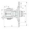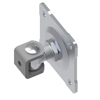 Cardine regolabile con piastra a 4 fori imbutita e cavallotto a fissare - Articolo 231B.18C. BREVETTATO. Realizzato in acciaio zincato. Fissaggio a colonna tramite viti e tasselli e al cancello tramite saldatura. Dimensioni come da schema.