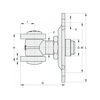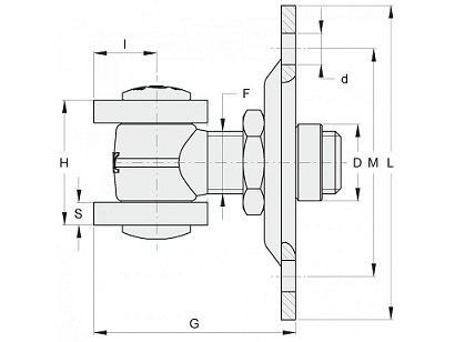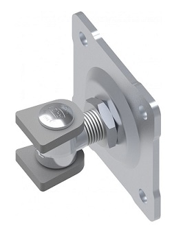 Cardine regolabile con piastra a 4 fori imbutita a fissare - Articolo 231B.22. BREVETTATO. Realizzato in acciaio zincato. Con perno antirotazione.Fissaggio a colonna tramite viti e tasselli e al cancello tramite saldatura. Dimensioni come da schema.
