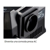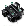 Caratteristiche· 2 modalità di carica selezionabili: carica rapida (una per una) o carica simultanea· porta di ricarica per USB· presa AC (8 A): utilizzabile come prolunga· compatibile con generatori a motore· carica anche a basse temperature (da -10°)· sistema di protezione da sovraccarico· indicatore di carica ad alta visibilità