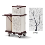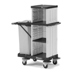 Carrello alberghiero Magic Art 06 Pick & Go.Carrello multiuso in polipropilene ad alta capienza modulare e accessoriabile per rispondere ad ogni esigenza di pulizia. E' ideale per il riassetto in strutture medio-piccole con problemi di spazio grazie al portasacco compattabile. Consigliato per il servizio di 6/8 stanze.Disponibile nella versione chiusa con porte decorate con motivi grafici (Magic Art 06 Safety), oppure nella versione senza porte di chiusura con parete posteriore decorata (Magic Art 06).Con ruote 125 mm ad alta scorrevolezza con paracolpo, facilità di movimento anche a pieno carcico.