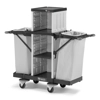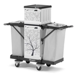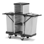 Carrello alberghiero magic art 07.Carrello multiuso in polipropilene ad alta capienza modulare e accessoriabile per rispondere ad ogni esigenza di pulizia. E' Ideale per il riassetto in strutture medio-piccole con problemi di spazio grazie al portasacco compattabile. Consigliato per il servizio di 6/8 stanze.Con ruote 125 mm ad alta scorrevolezza con paracolpo, facilità di movimento anche a pieno carcico.