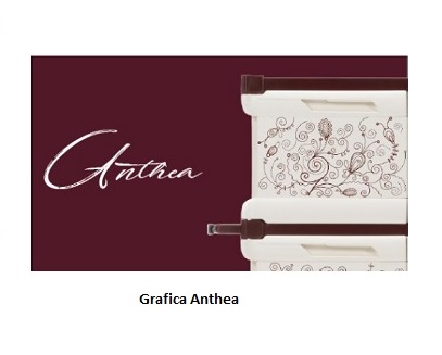 Grafica Anthea: bordeaux/panna. Grafica Kapok: antracite/bianco