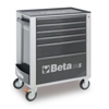 Cassettiera mobile con 6 cassetti. Caratteristichen.6 cassetti da 588x367 mm., montati su guide telescopiche a sfera4 cassetti altezza 70 mm. - portata max 25 Kg.1 cassetto altezza 140 mm. - portata max 30 Kg.1 cassetto altezza 280 mm. - portata max 35 Kg.Cassetti ad estrazione totale.Sistema di apertura dei cassetti (frontalino) in nylon rinforzato in fibra di vetro, su tutta la lunghezza del cassetto.Piano dei cassetti protetto da tappetini di gomma espansa.Serratura di sicurezza centralizzata frontale.Capacità di carico statico: 800 kg.Piano di lavoro termoplastico sul quale è collocabile a misura una cassettiera C22S, C23S, C23SC e C23ST (non incluse).Portaflacone laterale integrato.Quattro ruote Ø 125 mm: 2 fisse e 2 girevoli (una con freno). Possibilità di applicazione del portacarta 2400S-R/PC (non incluso).