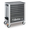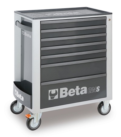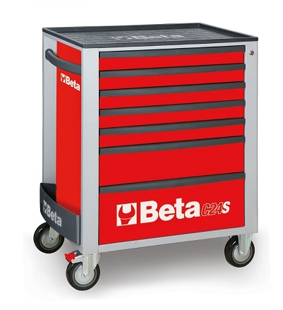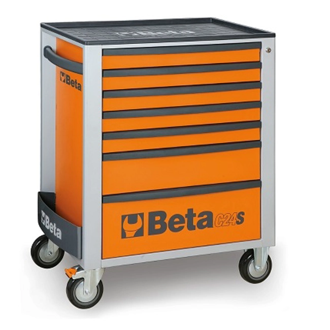 Caratteristichen.7 cassetti da 588x367 mm., montati su guide telescopiche a sfera5 cassetti altezza 70 mm. - portata max 25 Kg.1 cassetto altezza 140 mm. - portata max 30 Kg.1 cassetto altezza 210 mm. - portata max 30 Kg.Cassetti ad estrazione totale.Sistema di apertura dei cassetti (frontalino) in nylon rinforzato in fibra di vetro, su tutta la lunghezza del cassetto.Piano dei cassetti protetto da tappetini di gomma espansa.Serratura di sicurezza centralizzata frontale.Capacità di carico statico: 800 kg.Piano di lavoro termoplastico sul quale è collocabile a misura una cassettiera C22S, C23S, C23SC e C23ST (non incluse).Portaflacone laterale integrato.Quattro ruote Ø 125 mm: 2 fisse e 2 girevoli (una con freno).
