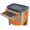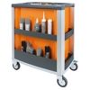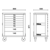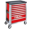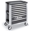 Cassettiera mobile con 8 cassetti. Caratteristiche Struttura portante in lega di alluminio per una maggiore resistenza e leggerezza.n.8 cassetti da 588x367 mm., montati su guide telescopiche a sfera6 cassetti altezza 70 mm. - portata max 30 Kg. 2 cassetti altezza 140 mm. - portata max 35 Kg.Sistema di apertura a sgancio rapido in alluminio, posizionato su tutta la lunghezza del cassetto.Serratura di sicurezza centralizzata frontale.Capacità di carico statico: 1200 Kg.Piano di lavoro multifunzione ad alta resistenza con portaminuterie e fori per l'alloggiamento dei giravite.Portacarta e portaflaconi laterali e posteriori, integrati.Quattro ruote Ø 125 mm: 2 fisse e 2 girevoli (una con freno), con nucleo in acciaio.