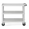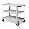 Carrello Clever 1005 LARGE. In lamiera verniciata. Ideale per lo spostamento di materiali, componenti ed utensili. Completo di:n.3 piani in acciaio dotati di bordo rialzato per evitare la caduta del materiale durante il trasporto. Piano centrale regolabile in altezza. Maniglia su un lato corto.n.4 ruote in gomma standard. FORNITO SMONTATODisponibile anche nella versione blu RAL5012