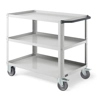 Carrello Clever 1007 LARGE. In lamiera verniciata. Ideale per lo spostamento di materiali, componenti ed utensili. Completo di:n.3 piani in acciaio dotati di bordo rialzato per evitare la caduta del materiale durante il trasporto. Piano centrale regolabile in altezza. Maniglia su un lato corto.n.4 ruote in gomma antitraccia sintetica. FORNITO SMONTATODisponibile anche nella versione blu RAL5012