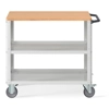 Carrello Clever 1009 LARGE. In lamiera verniciata. Ideale per lo spostamento di materiali, componenti ed utensili. Completo di: Piano superiore in legno Multiplex, come base di appoggio e per lavorazioni varie. n.2 piani in acciaio dotati di bordo rialzato per evitare la caduta del materiale durante il trasporto. Piano centrale regolabile in altezza. Maniglia su un lato corto.n.4 ruote in gomma antitraccia sintetica. FORNITO SMONTATODisponibile anche nella versione blu RAL5012