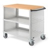 n.1 piano superiore in legno Multiplex n.2 piani con bordo rialzato Piano centrale regolabile in altezza Pannelli forati laterali Maniglia su un lato corto