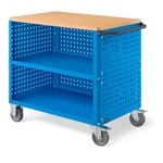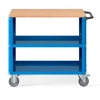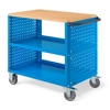 Carrello Clever 1014 LARGE. In lamiera verniciata. Ideale per lo spostamento di materiali, componenti ed utensili. Completo di: Piano superiore in legno Multiplex, come base di appoggio e per lavorazioni varie. n.2 piani in acciaio dotati di bordo rialzato per evitare la caduta del materiale durante il trasporto. Piano centrale regolabile in altezza. Pannelli forati laterali a foro quadro, ideali per l'alloggiamento di accessori Iron Team (non inclusi) e ganci Unipok (non inclusi) per riporre utensili ed attrezzatura. Maniglia su un lato corto. n.4 ruote in gomma antitraccia sintetica. FORNITO SMONTATODisponibile anche nella versione grigio chiaro RAL7035