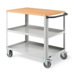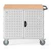 Carrello Clever 1017 LARGE. In lamiera verniciata. Ideale per lo spostamento di materiali, componenti ed utensili. Completo di: Piano superiore in legno Multiplex, come base di appoggio e per lavorazioni varie. n.2 piani in acciaio dotati di bordo rialzato per evitare la caduta del materiale durante il trasporto. Piano centrale regolabile in altezza. Chiuso da 2 porte forate, con serratura a cilindro per la custodia di attrezzature e componenti.Pannelli forati laterali e posteriore a foro quadro, ideali per l'alloggiamento di accessori Iron Team (non inclusi) e ganci Unipok (non inclusi) per riporre utensili ed attrezzatura. Maniglia su un lato corto. n.4 ruote in gomma antitraccia sintetica. FORNITO SMONTATODisponibile anche nella versione blu RAL5012