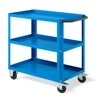 Carrello Clever 0906 SMALL. In lamiera verniciata. Ideale per lo spostamento di materiali, componenti ed utensili. Completo di:n.3 piani in acciaio dotati di bordo rialzato per evitare la caduta del materiale durante il trasporto. Piano centrale regolabile in altezza. Maniglia su un lato corto.n.4 ruote in gomma standard. FORNITO SMONTATODisponibile anche nella versione grigio chiaro RAL7035