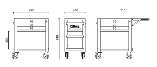 Carrello di servizio BW C50S con 3 cassetti e assortimento di 189 utensili.