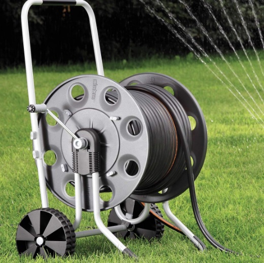 Grazie al Silent Block questo carrello avvolgitubo garantisce un perfetto scorrimento del tamburo. Ha una capacità ideale per giardini di ampie dimensioni.