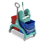 Carrello Nick Tec con maniglia ad anello Linea Wash & Go. Studiato esplicitamente per il lavaggio professionale del pavimento. Robusto, inossidabile, elegante.Carrello lavaggio doppio con strizzatore a ganasce.Caratteristiche:Struttura interamente in plastica, realizzata in unico blocco (monolitco). Con n.2 secchi uno rosso e uno blu da 15 oppure 25 litri ciascuno.Completo di strizzatore TEC colorato. Maniglione che facilita la conduzione e agevola le operazioni di risciacquo e strizzatura dell'attrezzo lavante. Ruote diam. 80 mm. con paracolpi.Per settori: Horeca, Collettività, Industria.