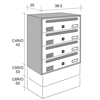 Casellario Postale Cubo Composto Rivista Orizzontale 4 Posti - Codice 20C4RO00.Casellario Postale composto in lamiera zincata verniciata alle polveri, disponibile con corpo verniciato grigio ghisa e sportelli nelle finiture indicate vedi scheda dettagli.Questo casellario è adatto per interno/esterno protetto, con introduzione e ritiro della posta frontale.Formato rivista.Corpo preforato sui lati per l’unione di più casellari.Dimensioni: 38,5x25x43 cm.