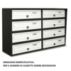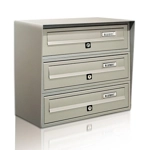 Casellario Postale Condominiale Slim 3 Posti - Codice SLIM3X1.Slim è il casellario postale da esterno a 3 posti adatto ad ogni tipo di installazione verniciato alle polveri nel colore argento metallizzato oppure con mantello colore antracite. Sportello in profilato di alluminio con sistema antiprelievo. Mantello di rivestimento verniciato alle polveri su entrambe i lati. Per installazione autoportante: necessaria una piantana piccola Codice 10SLIMPIANTPer installazioni particolari a preventivo.I fori per l'installazione a muro sono da realizzare in autonomia come l'acquisto dei tasselli CaratteristicheTenuta all'acqua garantitaGrande capacità contenitivaRispondente alle normative Europee EN13724Fornito completamente assemblatoSportello in profilato d'alluminio con sistema anti-prelievo Corpo cassetta interamente verniciatoMantello di rivestimento di 1,5 mm. è verniciato alle polveri su entrambi i lati Nessuna parte del casellario è esposta alla corrosione in quanto trattata con vernice alle polveri a processo di lavorazione conclusoVerniciatura alle polveri per esterno ad alta tenutaPrelievo postale frontale
