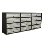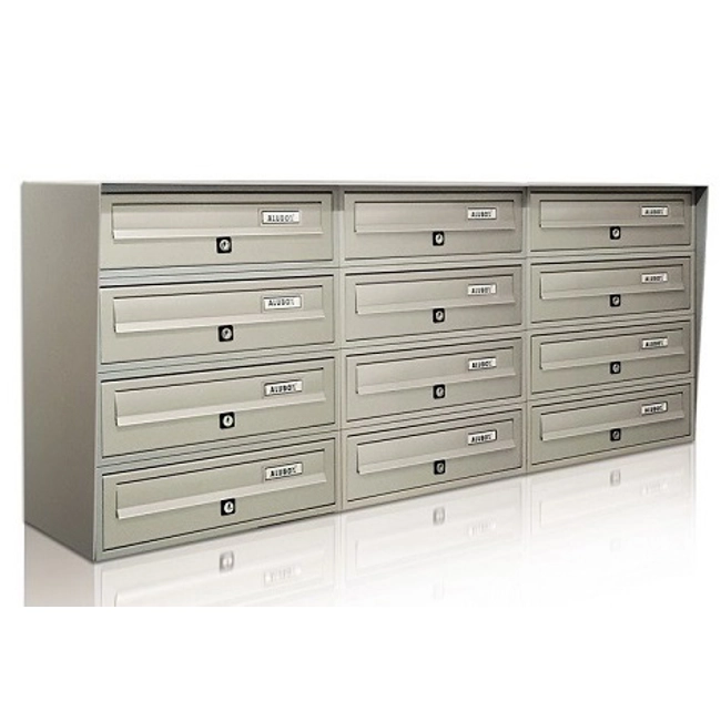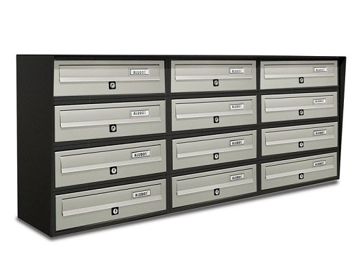 Casellario Postale Condominiale Slim 12 Posti - Codice SLIM4X3.Slim è il casellario postale da esterno a 12 posti adatto ad ogni tipo di installazione verniciato alle polveri nel colore argento metallizzato oppure con mantello color antracite.Sportello in profilato di alluminio con sistema antiprelievo.Mantello di rivestimento verniciato alle polveri su entrambe i lati.Per installazione autoportante: una piantana grande Codice 10SLIMPIANTPer installazioni particolari a preventivo.I fori per l'installazione a muro sono da realizzare in autonomia come l'acquisto dei tasselli