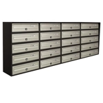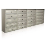 Casellario Postale Condominiale Slim 20 Posti - Codice SLIM5X4.Slim è il casellario postale da esterno a 20 posti adatto ad ogni tipo di installazione verniciato alle polveri nel colore argento metallizzato oppure con mantello color antracite.Sportello in profilato di alluminio con sistema antiprelievo.Mantello di rivestimento verniciato alle polveri su entrambe i lati.Per installazione autoportante: due piantane grandi Codice 10SLIMPIANTPer installazioni particolari a preventivo.I fori per l'installazione a muro sono da realizzare in autonomia come l'acquisto dei tasselliCaratteristicheTenuta all'acqua garantitaGrande capacità contenitivaRispondente alle normative Europee EN13724Fornito completamente assemblatoSportello in profilato d'alluminio con sistema anti-prelievoCorpo cassetta interamente verniciatoMantello di rivestimento di 1,5 mm. è verniciato alle polveri su entrambi i latiNessuna parte del casellario è esposta alla corrosione in quanto trattata con vernice alle polveri a processo di lavorazione conclusoVerniciatura alle polveri per esterno ad alta tenutaPrelievo postale frontale