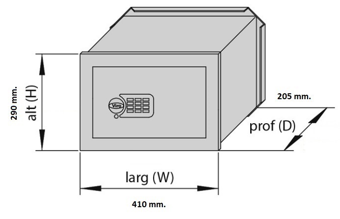 Dimensioni esterne 410x205x290 mm. (LxPxH)