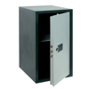 Cassaforte a combinazione elettronica "Privacy" - Codice Viro 1.4396. Con led e segnali acustici. Versione verticale da esterno. Caratteristiche meccaniche Cassa. In acciaio spessore 3 mm. Fori di fissaggio pretranciati: 4 sulla parete posteriore e 4 sulla base Ø 9,5 mm., per l'ancoraggio con tasselli a mobili o a muro. Cornice. In acciaio spessore 10 mm. Speciali battute in acciaio contro lo sfondamento percorrono tutto il perimetro interno della cornice. La cornice crea un corpo unico con la cassa, grazie alla robusta saldatura su tutto il perimetro.Sportello. In acciaio spessore 8 mm. con cerniere antistrappo. Minimo spazio tra sportello e cornice, che non consente l'introduzione di strumenti di scasso. Cerniere. Rinforzate in acciaio di lato 20 mm., fissate con perni in acciaio diam. 8 mm. Catenacci. n.3 orizzontali e n.2 verticali rotanti antitaglio, a doppia guida, in acciaio nichelato diam. 20 mm. Pomolo. Ricoperto in ABS antiscivolo, con anima in acciaio a rottura programmata: in caso di forzatura non si rompe il meccanismo ma solo il perno del pomolo, senza lasciare spazi ad eventuali strumenti da scasso. Meccanismo. Componenti interni completamente in acciaio senza parti in plastica.Elettromagnete(attuatore) incapsulato entro una robusta protezione in ottone. Cavi di collegamento di lunghezza ridotta. Sensore di controllo dello sportello aperto/chiuso, di tipo ottico. Tastiera ADA compatibile con riferimenti Braille e conferma acustica (i non vedenti sono in grado di conoscere l'esatta posizione dei tasti e la loro attivazione). Disposizione dei tasti che limita al massimo i possibili errori di digitazione. Cilindro di emergenza protetto da piastrina in acciaio cementato e temprato contro lo scasso ed il trapano. 2 chiavi di emergenza a profilo brevettato (marchio di forma), duplicabili esclusivamente da Viro. Caratteristiche elettronicheAlimentazione. Sfrutta una tecnologia a basso consumo (4 pile alcaline da 1,5 Volt) per allungare al massimo la vita delle batterie (fino a 20.000 operazioni con lo stesso set di pile). Scheda elettronica. Protetta contro i tentativi di effrazione effettuati con scariche elettriche ad alta tensione e contro l'inversione involontaria delle pile (nella maggior parte delle casseforti in commercio, montando le batterie al contrario, la scheda elettronica si danneggia in modo irreversibile). Connettori. In numero ottimale per massimizzare l'affidabilità della scheda. Memoria non volatile. L'assenza delle batterie non cancella il codice. LED indicatori: 2 verdi (OK = operazione corretta; NEW CODE = inserimento nuovo codice) e 2 rossi (ERROR = operazione errata; BATTERY = batterie in esaurimento). Combinazioni: accetta codici da 3 a 8 cifre (100 milioni di combinazioni possibili). Il cambio combinazione è consentito soltanto a sportello aperto, attraverso il pulsante C della tastiera. Blocco elettronico: dopo 5 errori di codice consecutivi (blocco con durata 15 min.). A richiesta Modulo di illuminazione interna (1.4383.0312): che accende una luce all'apertura dello sportello, per identificare con facilità, anche nelle casseforti più grandi, i piccoli oggetti custoditi all'interno (modulo ordinabile anche successivamente all'acquisto della cassaforte). Applicabile anche ai tesoretti degli armadi.