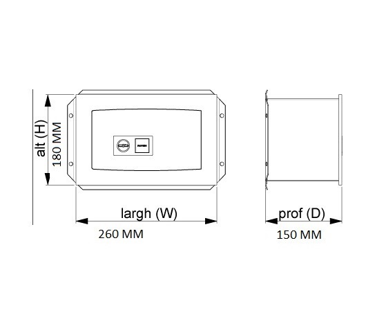 Dimensioni esterne 260x150x180 mm. (LxPxH)