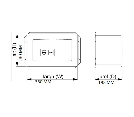 Dimensioni esterne 360x195x230 mm. (LxPxH)