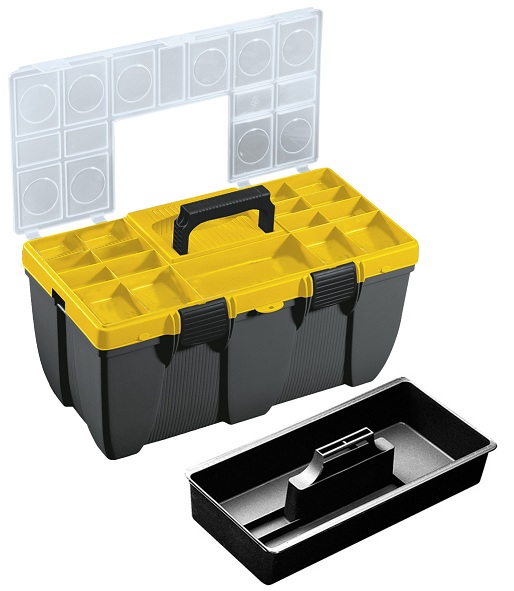 Cargo é un nome molto significativo. Infatti queste cassette alla loro grande capienza aggiungono un coperchio attrezzato con scomparti di varie dimensioni per una funzionale organizzazione delle minuterie. Gli obló del coperchio permettono di individuare facilmente la posizione dei vari accessori. Con portattrezzi e coperchio attrezzato a portaminuterie. Predisposta per chiusura con lucchetto.