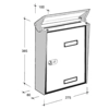 Cassetta postale singola S90 per esterno formato rivista di grandi dimensioni. In lamiera elettrozincata. L'alta qualità dei materiali la rende adatta all'esterno, essendo resistente alla ruggine, alla corrosione e mantenendo asciutto il contenuto. Con tetto parapioggia. Impostazione dall'alto con tappi antirumore posti sotto il tetto parapioggia, feritoia da 240x24 mm. Ritiro frontale tramite porta con apertura a libro.La porta è munita di reggiposta che impedisce la caduta del contenuto. Serratura a cilindro di sicurezza con due chiavi numerate.Spioncino e portanome, intercambiabili, in materiale plastico.