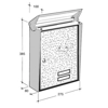 Cassetta postale singola S90 per esterno formato rivista di grandi dimensioni. In lamiera elettrozincata con rilievi argento. Realizzata in lamiera elettrozincata e verniciata a forno, con tromba ornamentale in ottone lucido antracite e con porta di ritiro lavorata a rilievi sfumati in argento.L'alta qualità dei materiali la rende adatta all'esterno, essendo resistente alla ruggine, alla corrosione e mantenendo asciutto il contenuto. Impostazione dall'alto con tappi antirumore posti sotto il tetto parapioggia, feritoia da 240x24 mm. Ritiro frontale tramite porta con apertura a libro. La porta è munita di reggiposta che impedisce la caduta del contenuto. Con tetto parapioggia. Serratura a cilindro di sicurezza con due chiavi numerate. Spioncino e portanome, intercambiabili, in materiale plastico.