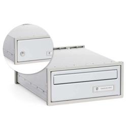 Apertura imbucalettere da 230x20 mm., protetta da portina oscillante verso l'interno con ritorno a molla.