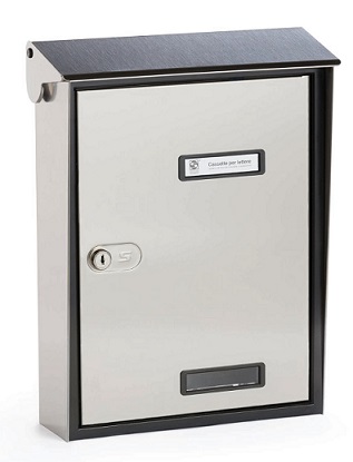 Cassetta postale singola S90 per esterno formato rivista di grandi dimensioni. In acciaio inox AISI 304 satinato. L'alta qualità dei materiali la rende adatta all'esterno, essendo resistente alla ruggine, alla corrosione e mantenendo asciutto il contenuto. Con tetto parapioggia. Impostazione dall'alto con tappi antirumore posti sotto il tetto parapioggia, feritoia da 240x24 mm. Ritiro frontale tramite porta con apertura a libro. La porta è munita di reggiposta che impedisce la caduta del contenuto. Serratura a cilindro di sicurezza con due chiavi numerate.Spioncino e portanome, intercambiabili, in materiale plastico.