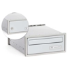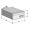 Cassetta orizzontale con impostazione frontale e ritiro posteriore, serie SC3, Open Air 300. Composta di tubolare in lamiera zincata e porta in alluminio spessore 20/10. Telaio in materiale plastico ignifugo, indeformabile e resistente ai raggi UV. Porta intercambiabile con apertura a libro. Imbuca lettere 250x24 mm. con portina oscillante verso l'interno con ritorno a molla. Robusta serratura con due chiavi, con possibilità di inserimento diretto di cilindro Kaba e Keso. Portanome intercambiabile con targhetta in PVC adatta per l'incisione del nome a pantografo. Spioncino non presente per garantire la massima riservatezza.