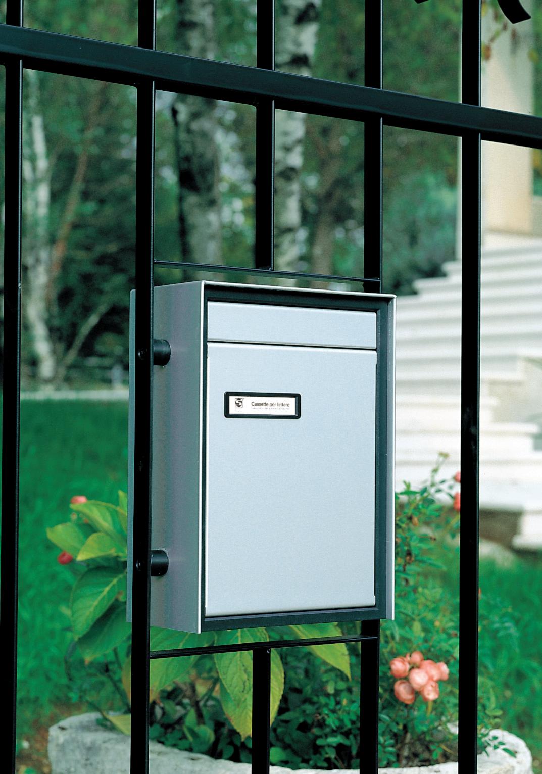 Cassetta postale bifacciale tradizionale passante per recinzioni. Pensata per essere inserita comodamente all'interno della recinzione, evitando sporgenze esterne o interne dal perimetro. Interamente realizzata in alluminio.L'impostazione è frontale, mentre il ritiro è posteriore. Apertura imbucalettere frontale, protetta da una portina oscillante con ritorno a molla.Codice Silmec 10-380.72