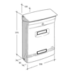 Caratteristiche tecnicheBuona tenuta agli agenti atmosferici e forma curva che garantiscono lo scorrere dell'acqua evitando il deposito di parassiti e polveri, assicurando nel tempo un aspetto estetico sempre gradevole.Robusti perni in "delrin" permettono un perfetto movimento nel tempo.Gommini posti sotto il tettuccio servono ad annullare i rumori.Apertura a ribalta con arresto per impedire la caduta della posta e consentirne il facile ritiro.Formato "rivista" che permette l'impostazione comoda per gli addetti alla distribuzione senza rovinare il contenuto.Chiusura per gravità del coperchio che assicura l'integrità della posta poiché garantisce la chiusura automatica del tettuccio parapioggia.Sistema di ancoraggio con feritoie per facilitare l'installazione su vari supporti.L'installazione a muro è facilitata dal sistema di ancoraggio in dotazione con l'acquisto della cassetta, oppure può essere appesa a recinzione con l'aiuto dei kit traversini (non in dotazione).Fornita con viti, tasselli a pressione e gommini che compensano l'eventuale irregolarità del muro.Spioncino e portanome nel lato frontale.Due chiavi numerate.