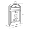 Cassetta postale singola "Regia" per esterno di grandi dimensioni. Le lavorazioni in basso rilievo la rendono elegante e di grande impatto visivo, un classico che non passa mai di moda. Realizzata interamente in alluminio pressofuso verniciato, che permette un'ottima resistenza agli agenti atmosferici. Impostazione e prelievo frontale, apertura imbuca lettere con elemento mobile di chiusura. La porta di ritiro, ampia quasi tutta la facciata, ha l'apertura a ribalta con arresto che impedisce la caduta della posta e ne consente il ritiro facilmente. Codice Silmec 10-492.65
