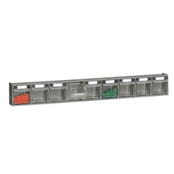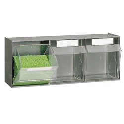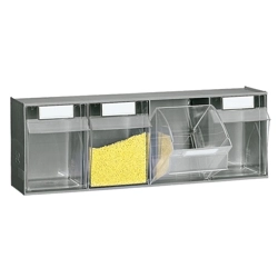 Le cassettiere della serie Practibox sono la soluzione ideale ad ogni problema di stoccaggio. La struttura è realizzata in ABS di colore grigio, mentre i cassetti sono realizzati in polistirolo trasparente ad alta resistenza meccanica. Sono disponibili in diversi modelli per profondità e altezza, mentre la larghezza di 600 mm., in comune per tutti, permette di sovrapporli, consentendo le più svariate combinazioni. Le cassettiere sono predisposte per essere inserite negli scaffali e nei carrelli serie Practibox o fissate a parete con tasselli. Sono dotate di apertura a basculante, per un ottimale accesso al prodotto, e di pratica maniglia. Rif. LB 05315 0601