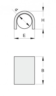 Cavallotto per catenaccio tondo con piastra a saldare - Articolo 53.16. Finitura zincata. Dimensioni come da schema.