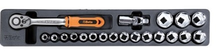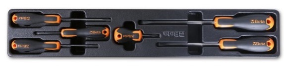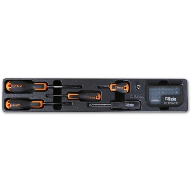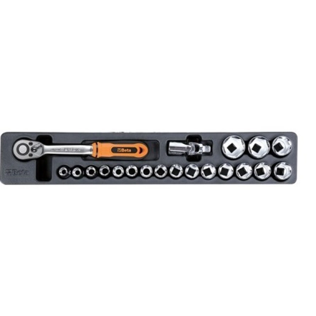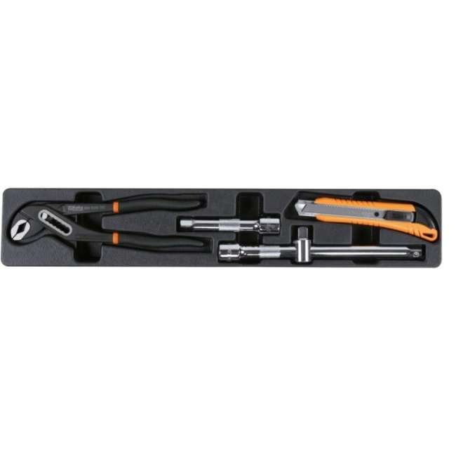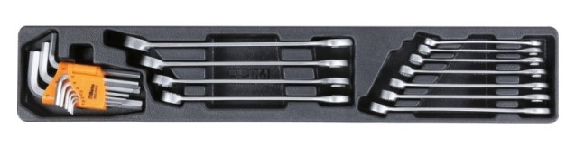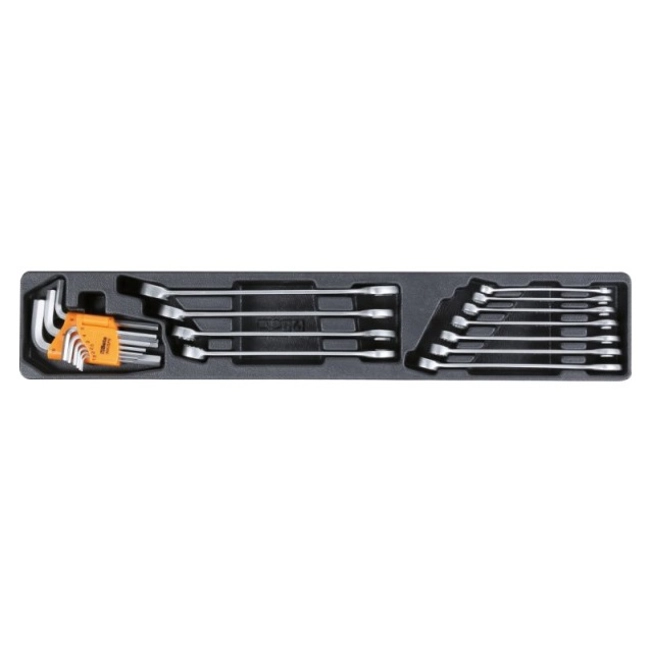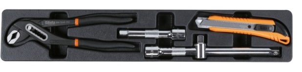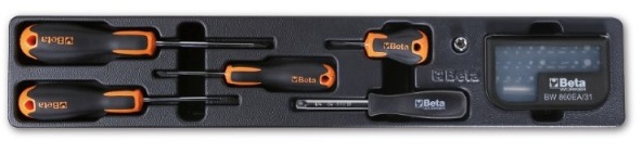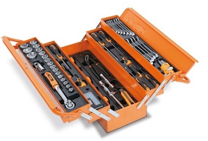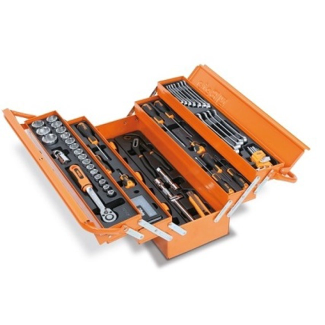 Rif. Beta 021206911. Art. BETA BW 2120L-E/T91.Cassetta porta attrezzi in lamiera con termoformati e 91 utensili per manutenzione generale. La cassetta include:n.18 chiavi a bussola con attacco quadro femmina 1/2" bocca esagonale, cromate 10-11-12-13-14-15-16-17-18-19-20-21-22-23-24-27-30-32 mm., art. BW 920An.1 cricchetto reversibile con attacco quadro maschio 1/2" 260 mm., art. BW 920/55n.1 snodo con attacchi quadri maschio e femmina 1/2" cromato, art. BW 920/25n.1 prolunga con attacchi quadri maschio e femmina 1/2", 125 mm., art. BW 920/21 n.1 prolunga attacchi quadri maschio e femmina 1/2", 250 mm., art. BW 920/22n.1 raccordo da attacco quadro 1/2” a attacco quadro 3/8” femmina, art. BW 910/16F n.1 pinza regolabile cerniera chiusa 250 mm., art. BW 1048n.1 cutter 18 mm., art. BW 1771 n.11 chiavi combinate a forchetta e poligonale piegata cromate 8-9-10-11-12-13-14-15-16-17-19 mm., art. BW 42n.1 serie di 9 chiavi maschio esagonale piegate, art. BW 96/SC9n.5 giravite Evox per viti a testa con intaglio 2,5x50-3x75-4x100-5,5x125-6,5x150 mm., art. BW 1201En.1 giravite Evox per viti a testa con intaglio, tipo cortissimo cromati punta nera 4x30 mm., art. BW 1201ENn.1 serie di 30 inserti in astuccio tascabile, art. BW 860EA/31n.1 bussola portainserti per BW 861, BW 862, BW 866, art. BW 895/1n.1 quadro con impugnatura 1/4" 150 mm., art. BW 900/30n.3 giravite Evox per viti con impronta a croce Phillips® cromati punta nera PH0x60-PH1x80-PH2x100 mm., art BW 1202En.1 giravite Evox per viti con impronta a croce Phillips®, tipo cortissimo cromati punta nera PH1x30 mm., art. BW 1202ENn.1 tronchese a taglienti diagonali 160 mm., art. BW 1082BMn.1 pinza universale cromata lucide con impugnatura bimateriale 180 mm., art. BW 1150BMn.1 pinza a becchi mezzotondi diritti 160 mm., art. BW 1166BM
