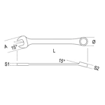 Chiavi combinate a forchetta e poligonale piegata cromate - Rif. Beta 42. Ingombro delle teste ridotto. Coppie di serraggio nettamente superiori a quelle delle norme ISO 1711-1.
