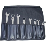 Tipo con cricchetto snodato fino a 180°. In acciaio CROMO-VANADIO. Una testa ad apertura fissa e una poligonale a cricco. Dentatura finissima. Robusta, maneggevole, pratica, di elevata qualità. Finitura accurata. Esecuzione cromata.